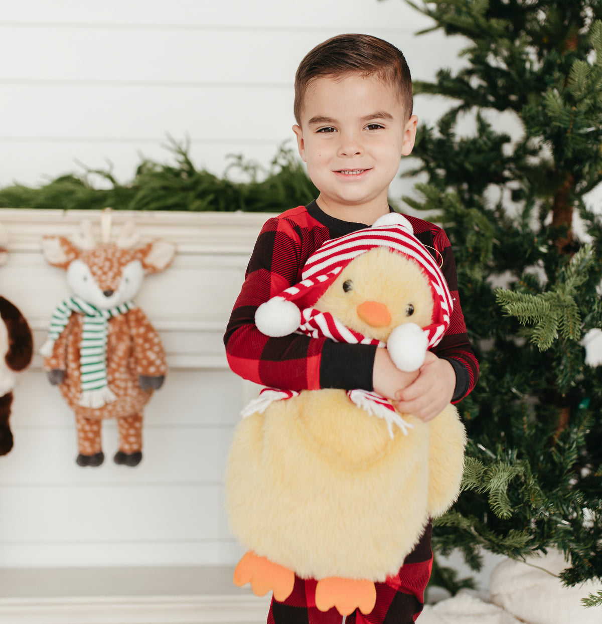 This chic stocking features a hidden pocket in the belly, so you can fill it with fun surprises. Simply expand the pocket by gently loosening the opening just under the neck, fill with gifts, then gently pull on both arms to tighten the pocket opening.