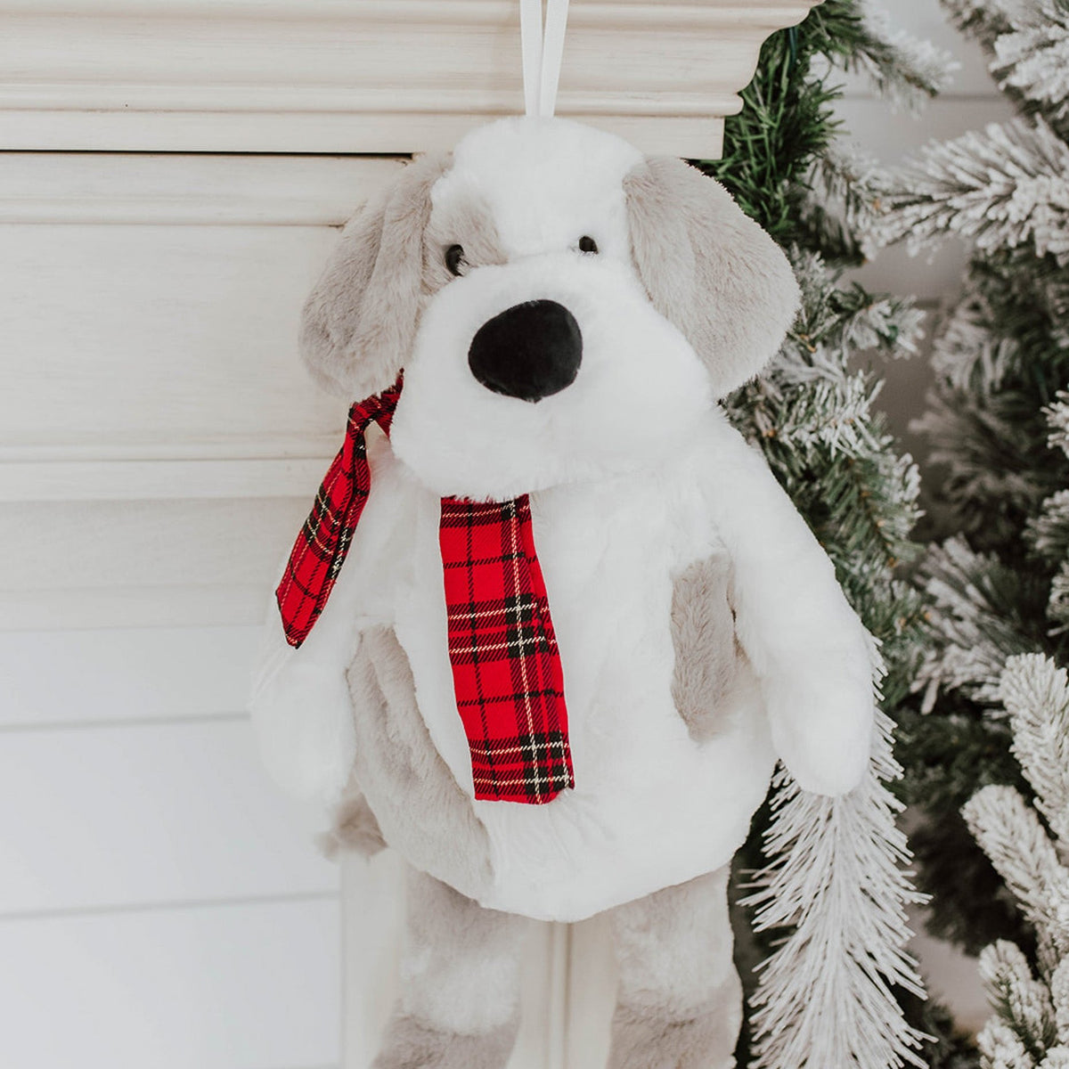This dog stocking features a hidden pocket in the belly, so you can fill it with fun surprises.