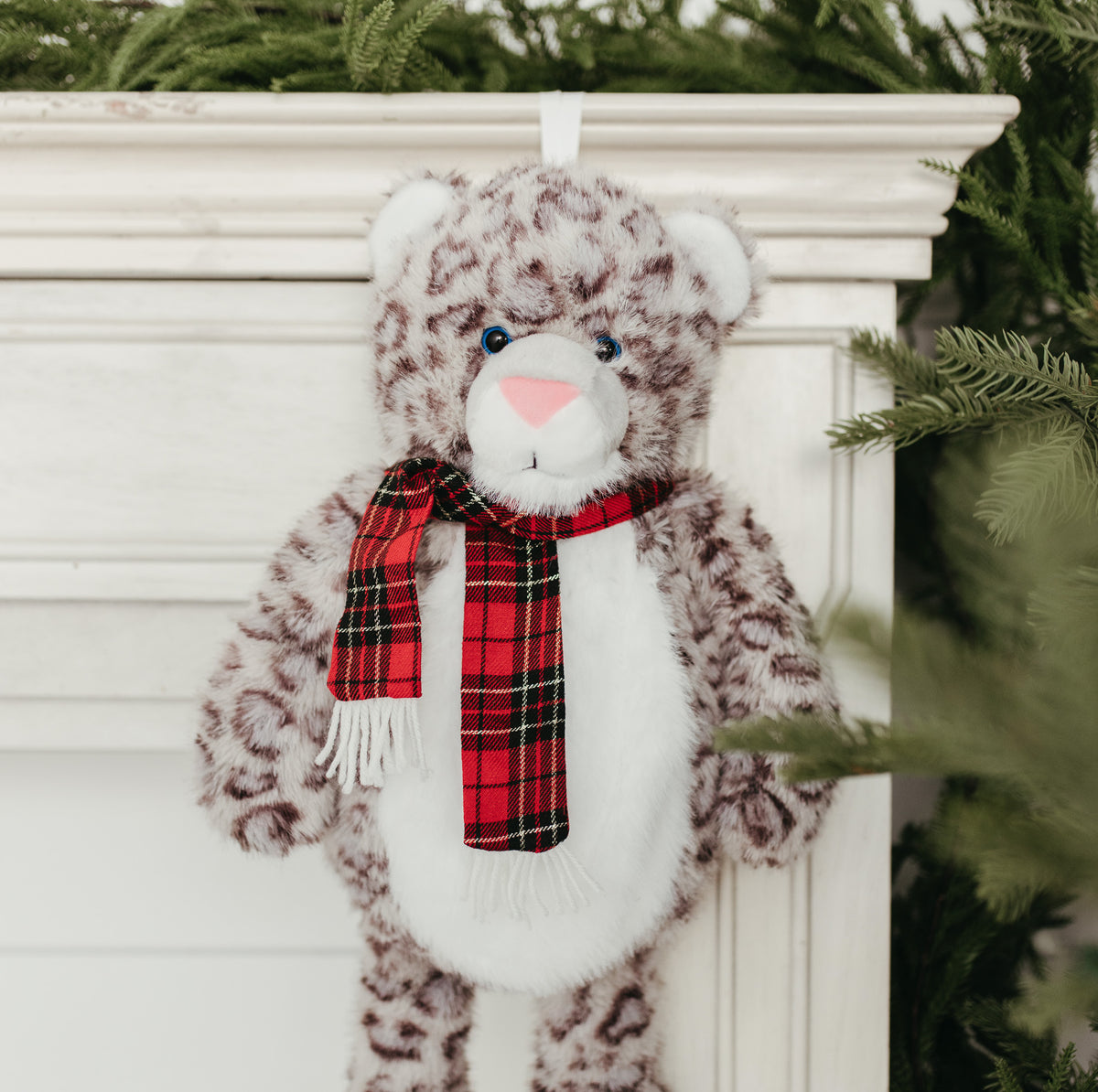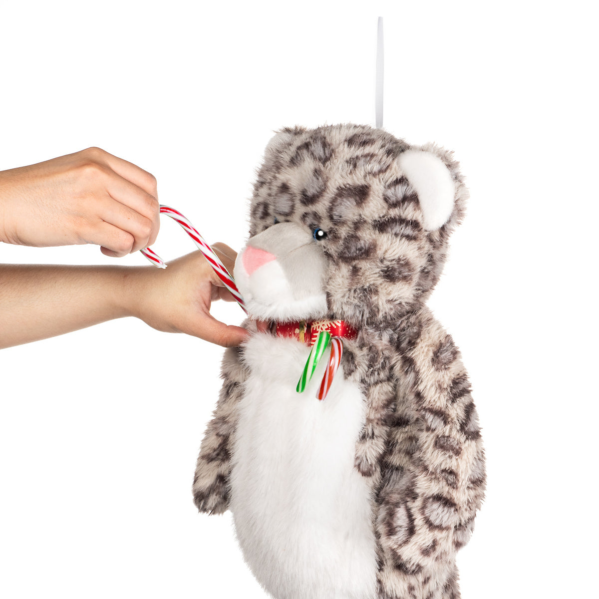 This leopard stocking features a hidden pocket in the belly, so you can fill it with fun surprises. Simply expand the pocket by gently loosening the opening just under the neck, fill with gifts, then gently pull on both arms to tighten the pocket opening.