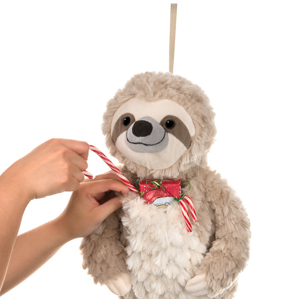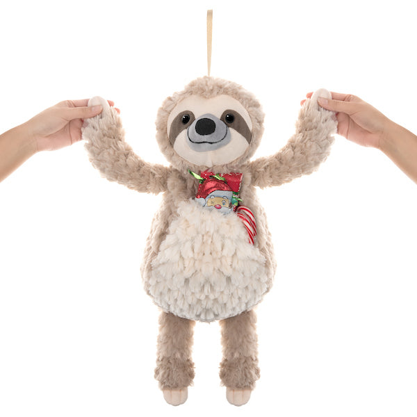 This sloth stocking features a hidden pocket in the belly, so you can fill it with fun surprises. Simply expand the pocket by gently loosening the opening just under the neck, fill with gifts, then gently pull on both arms to tighten the pocket opening.