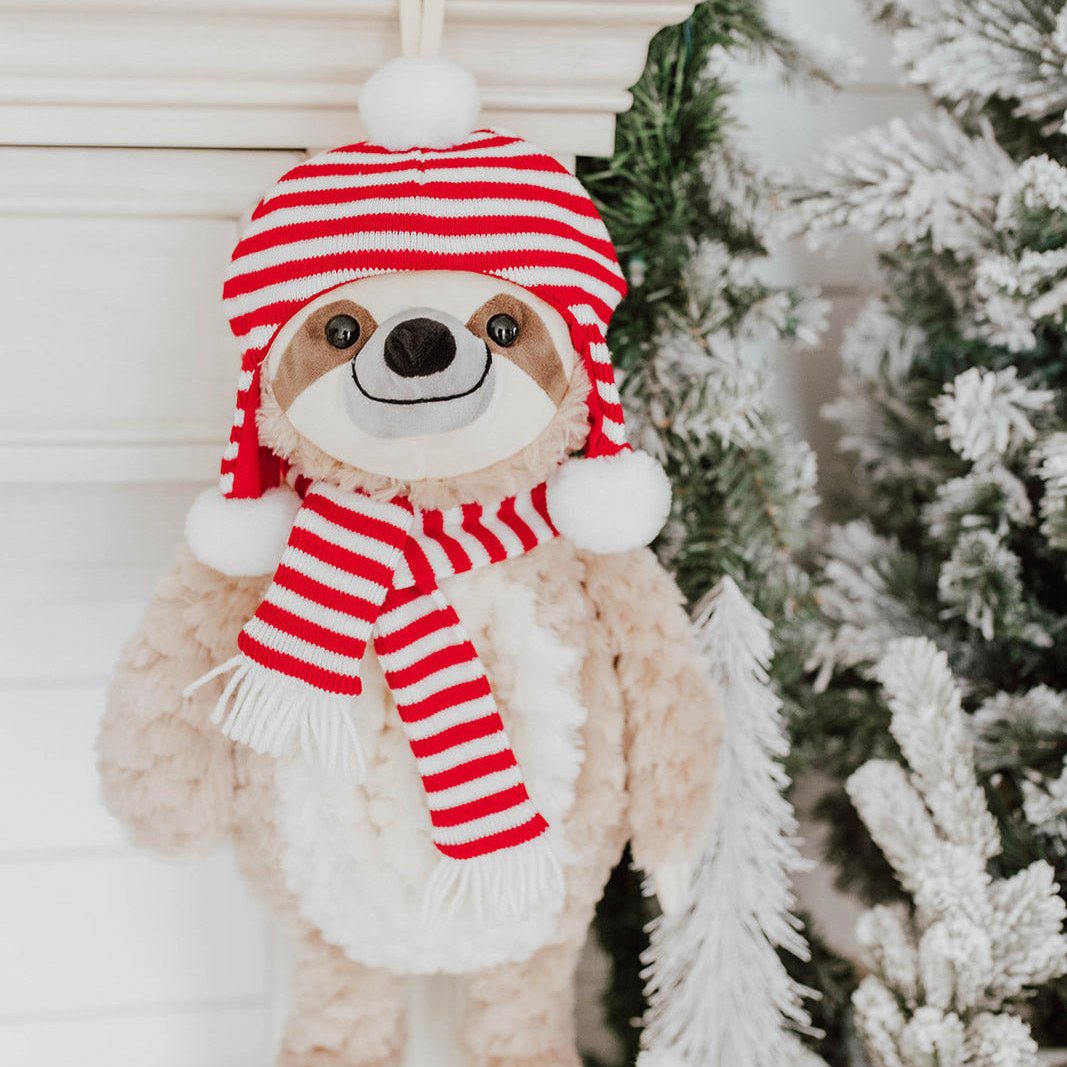 Sammy is our first sloth stocking. Sammy pairs perfectly with a winter scarf, hat or flower crown.