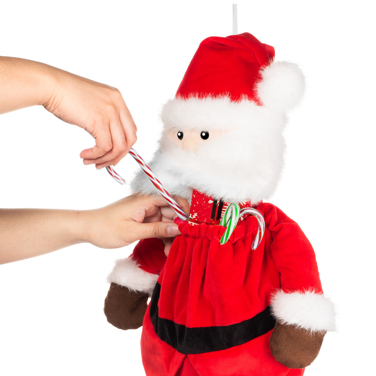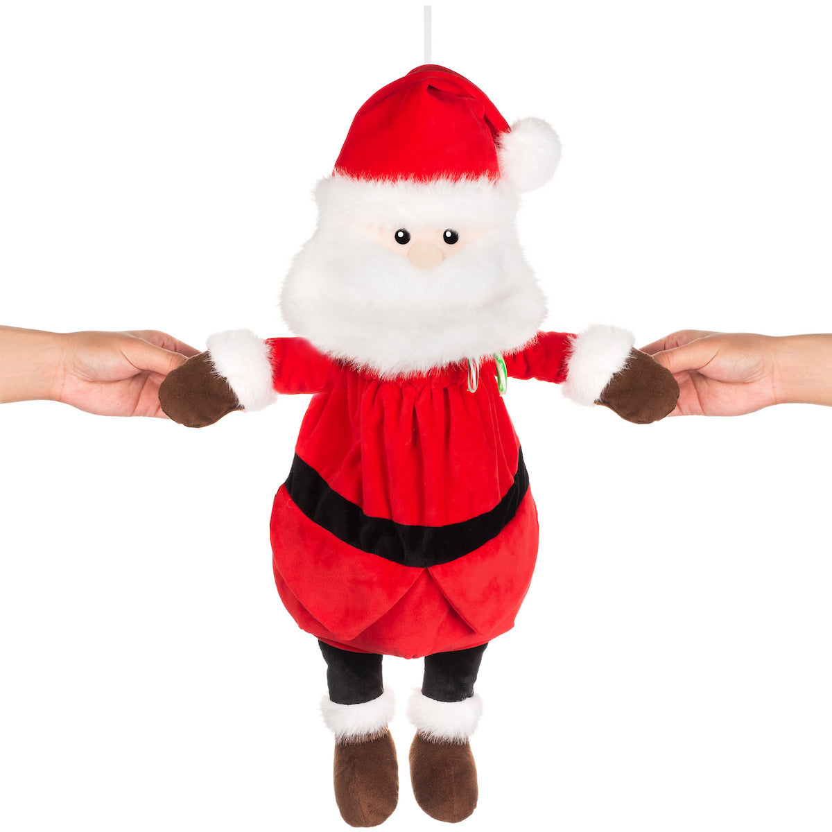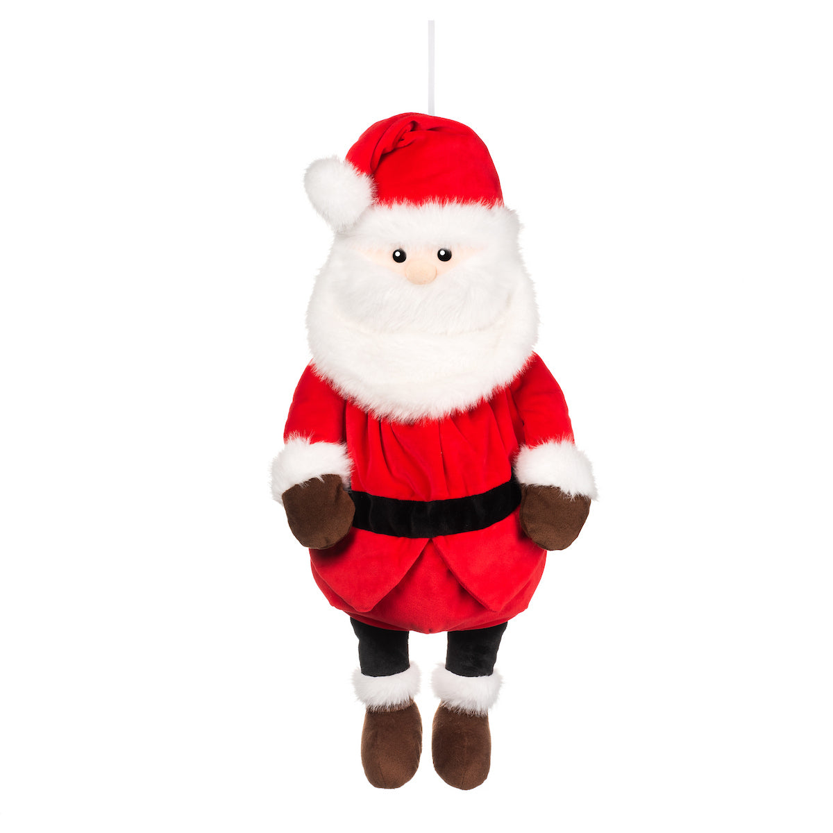 This Santa stocking features a hidden pocket in the belly, so you can fill it with fun surprises. Simply expand the pocket by gently loosening the opening just under the neck, fill with gifts, then gently pull on both arms to tighten the pocket opening.