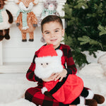 We are excited to introduce Santa Claus! His soft beard and suit are sure to brighten your holiday. Santa looks sharp in his suit, but can also rock a winter scarf.