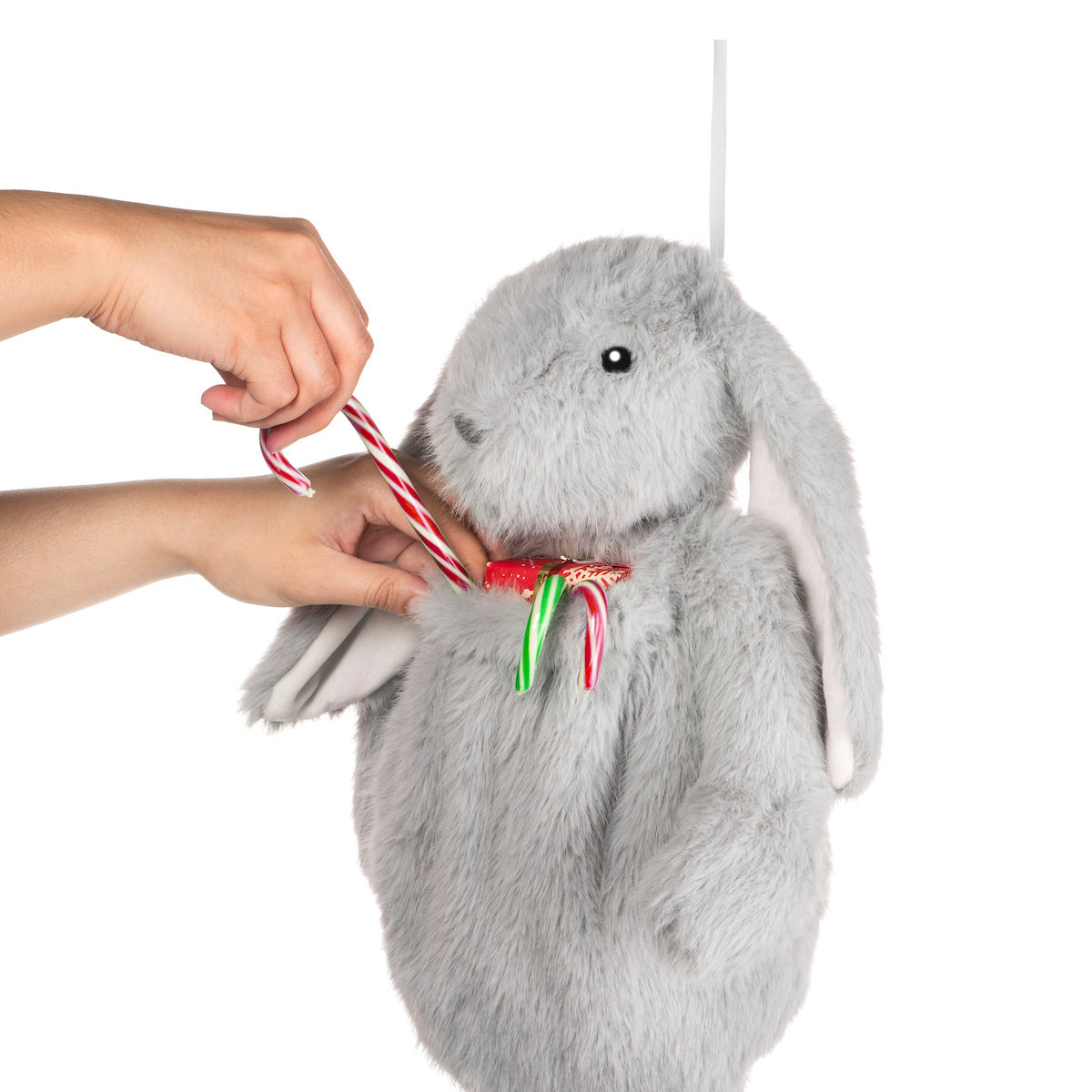 This bunny stocking features a hidden pocket in the belly, so you can fill it with fun surprises. Simply expand the pocket by gently loosening the opening just under the neck, fill with gifts, then gently pull on both arms to tighten the pocket opening.