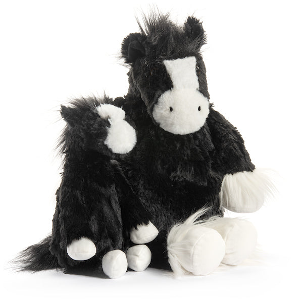 Oreo the Horse is one of our miniature animals. It's the perfect accompaniment to our Midnight the Horse Stocking. When Midnight is hanging from the fireplace, Oreo is the perfect Snuggle Bunny for long winter nights. When the stockings get put into storage, you can snuggle Oreo all year long.